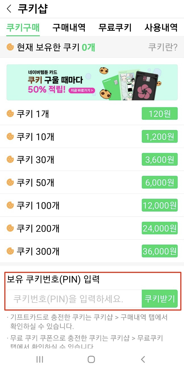 네이버 웹툰 기프트카드로 쿠키 충전하는 법 (아이폰 및 웹툰 웹)
