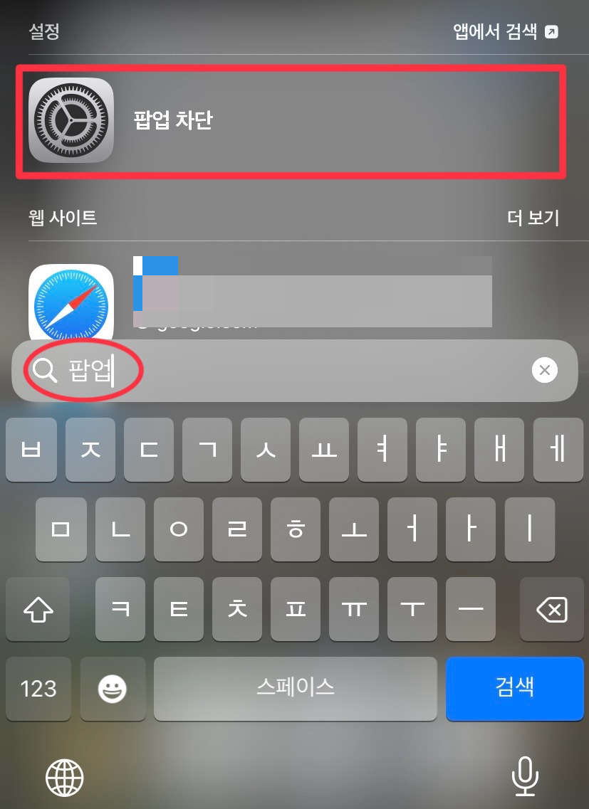 4. 더 간편하게 팝업차단을 껐다 켰다 하려면, 모바일 자체 검색에서 "팝업"을 검색해 주면 됩니다.